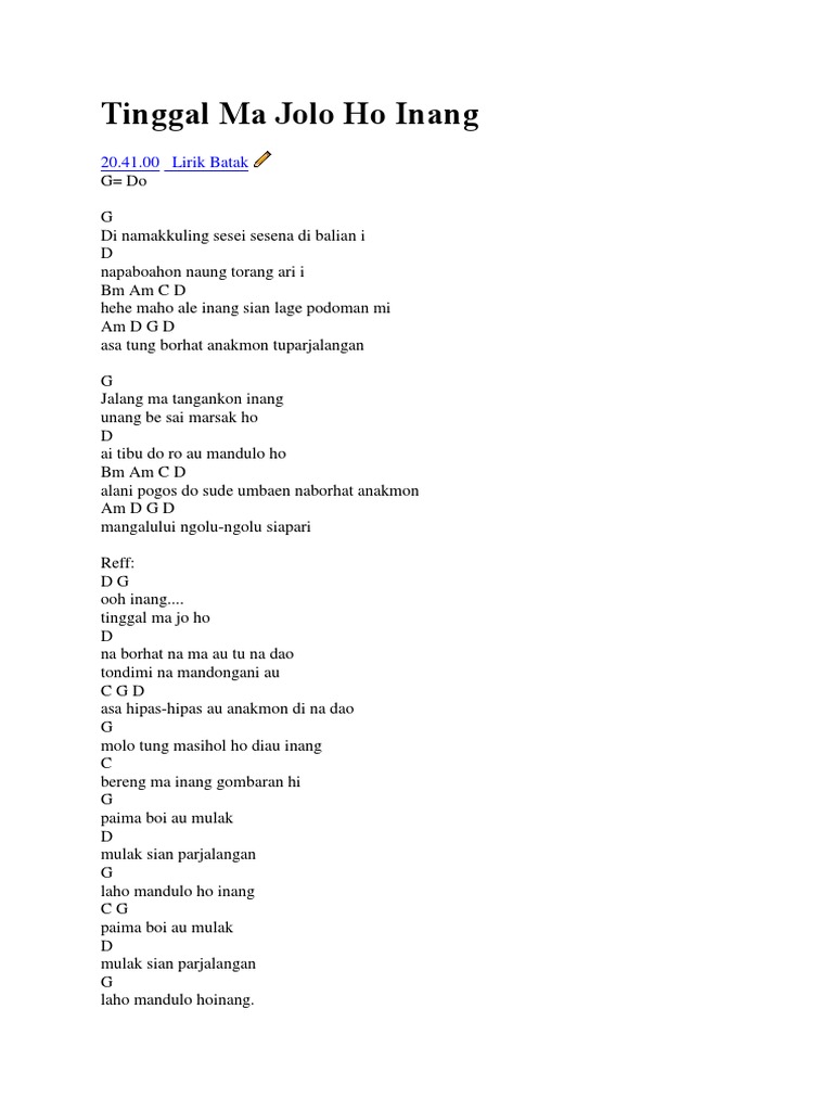 Chord Dan Lirik Lagu Batak Dinamangkuling Sese I Batak Post